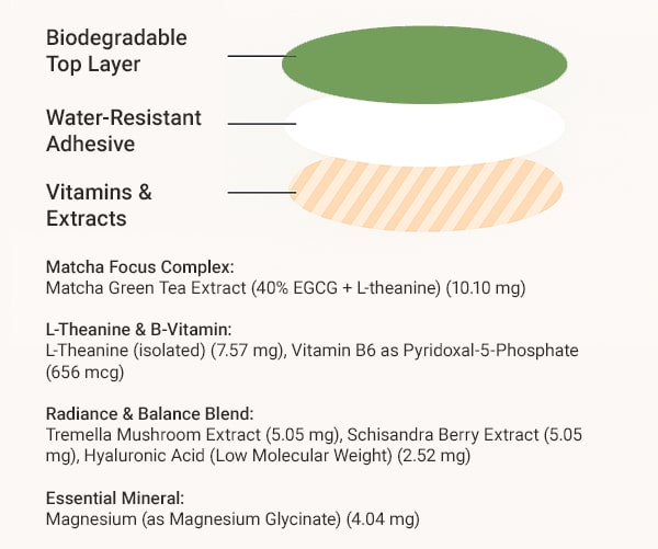 Each patch delivers micro-doses of matcha caffeine and L-theanine steadily for 8-12 hours, enough to carry you from your morning meeting through afternoon tasks. When you feel your natural focus dim, simply peel it off.