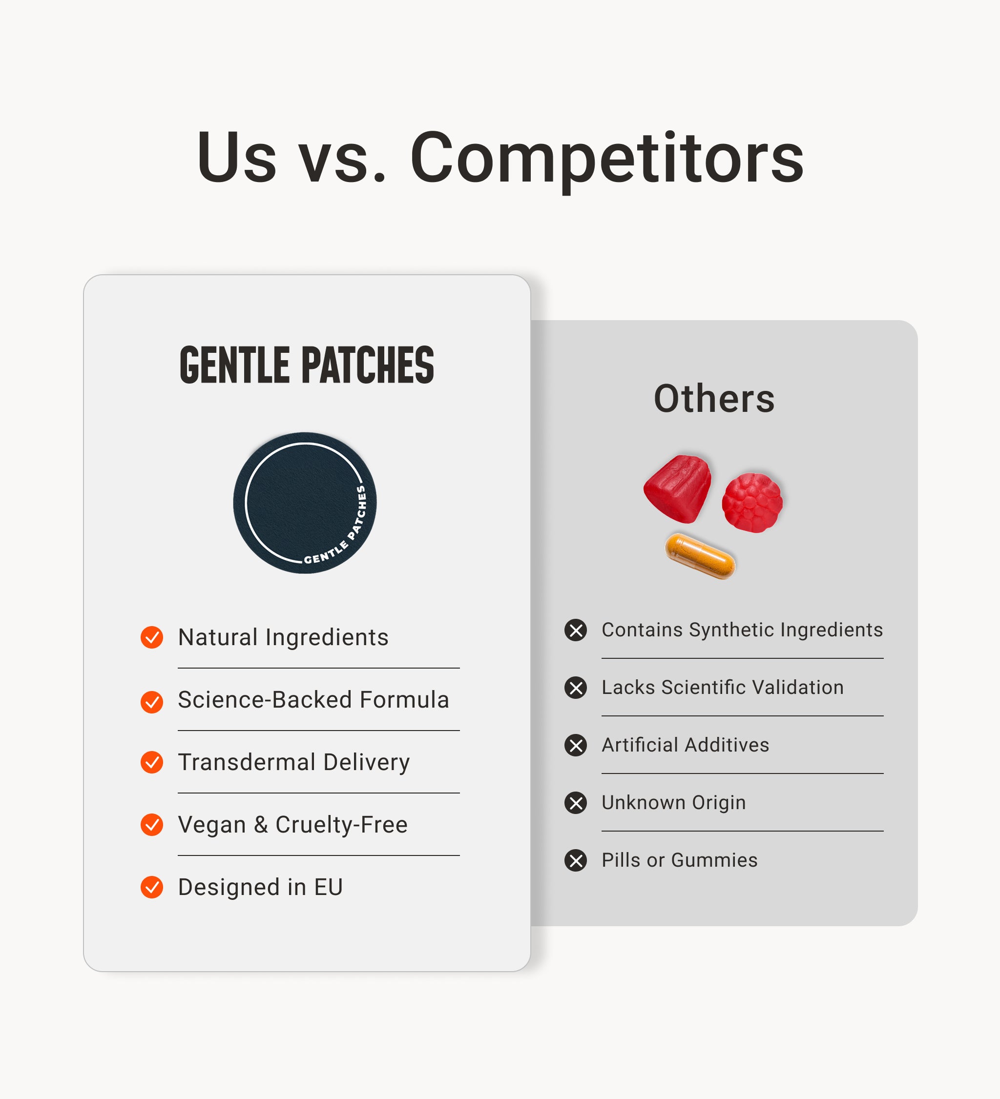 Gentle Patches are designed for consistent, easy-to-use support. Our patches deliver active ingredients through the skin for steady absorption — no pills, no hassle.