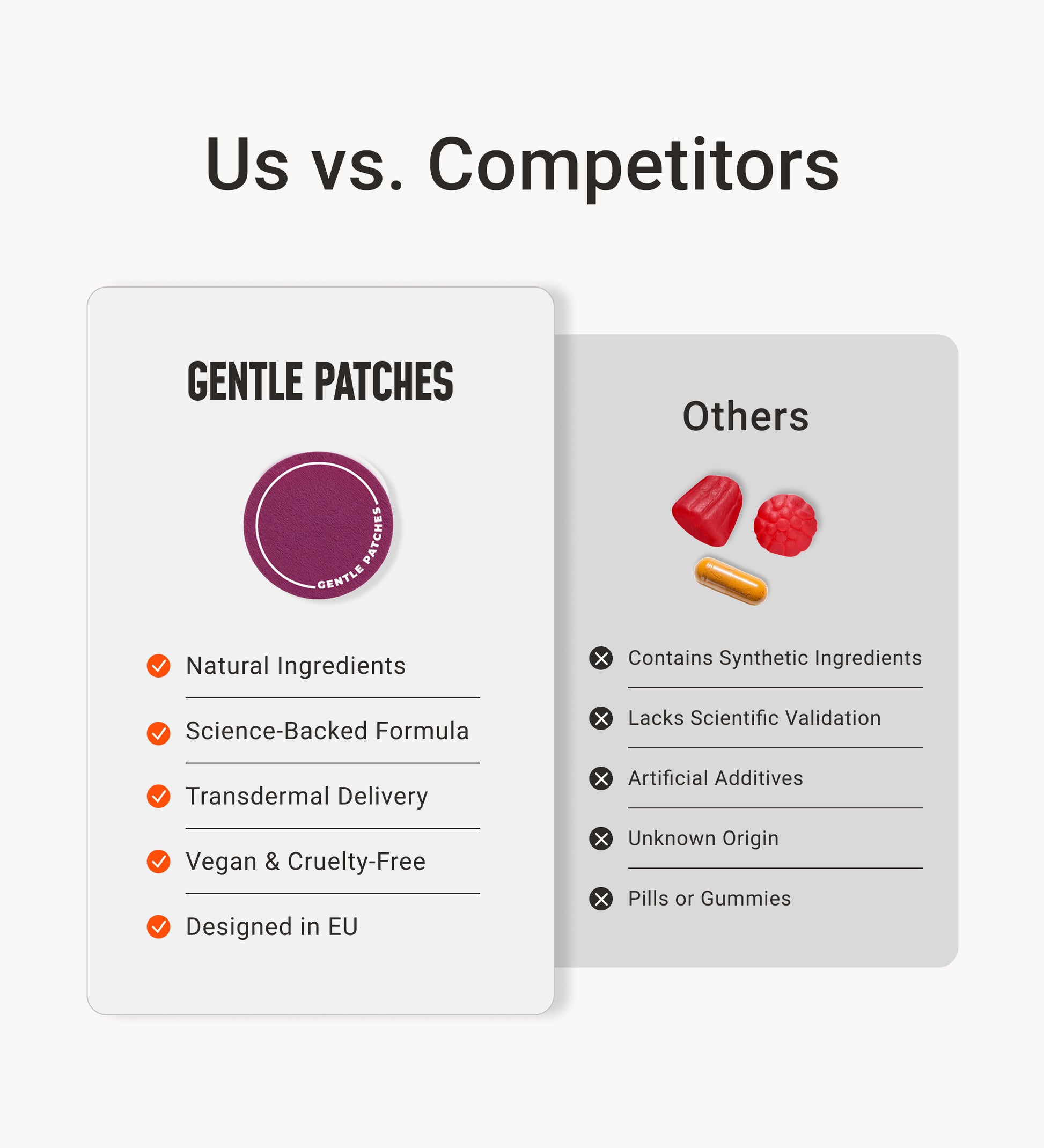 Gentle Patches are designed for consistent, easy-to-use support. Our patches deliver active ingredients through the skin for steady absorption — no pills, no hassle.